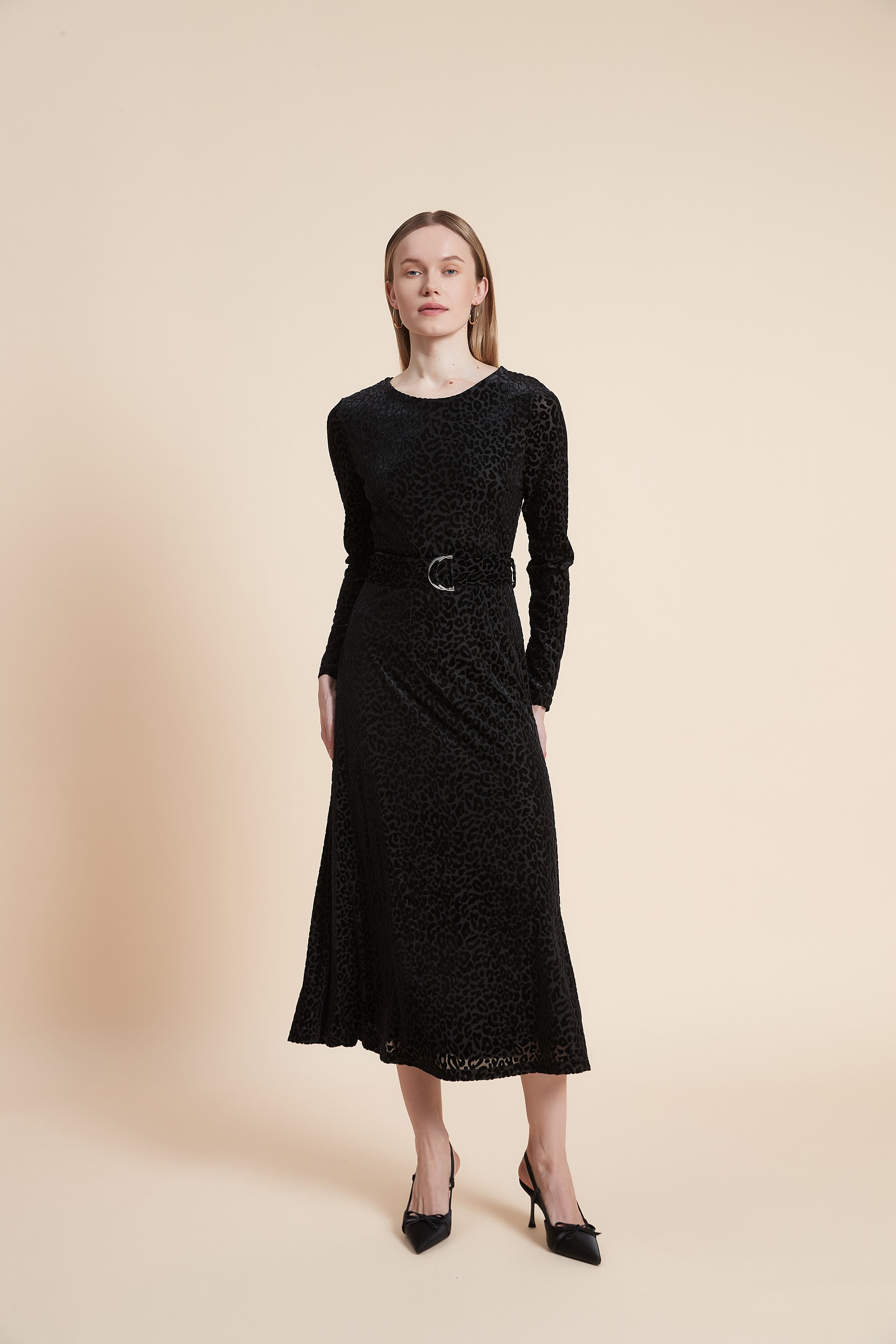Print Midi Dress with Long Sleeves