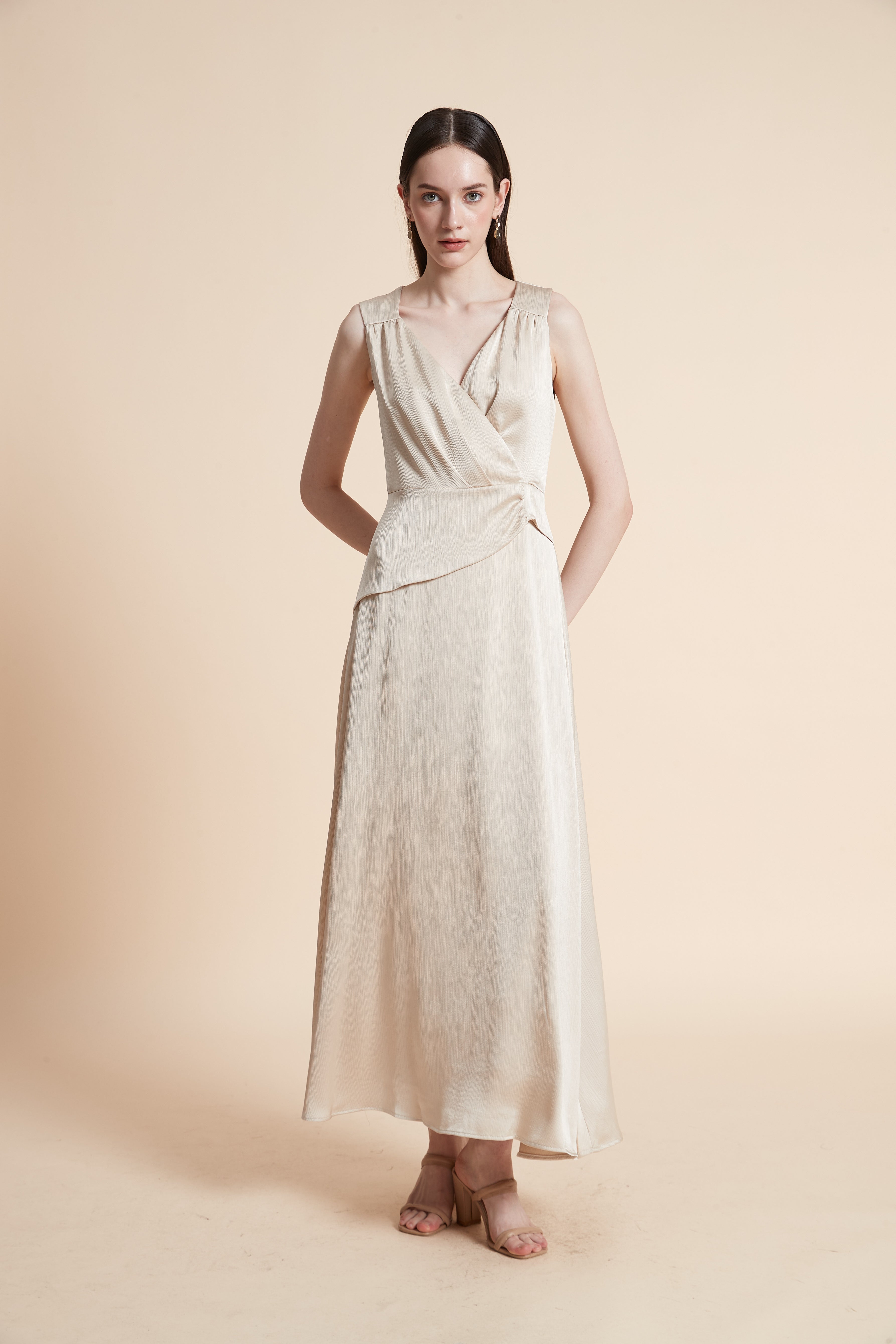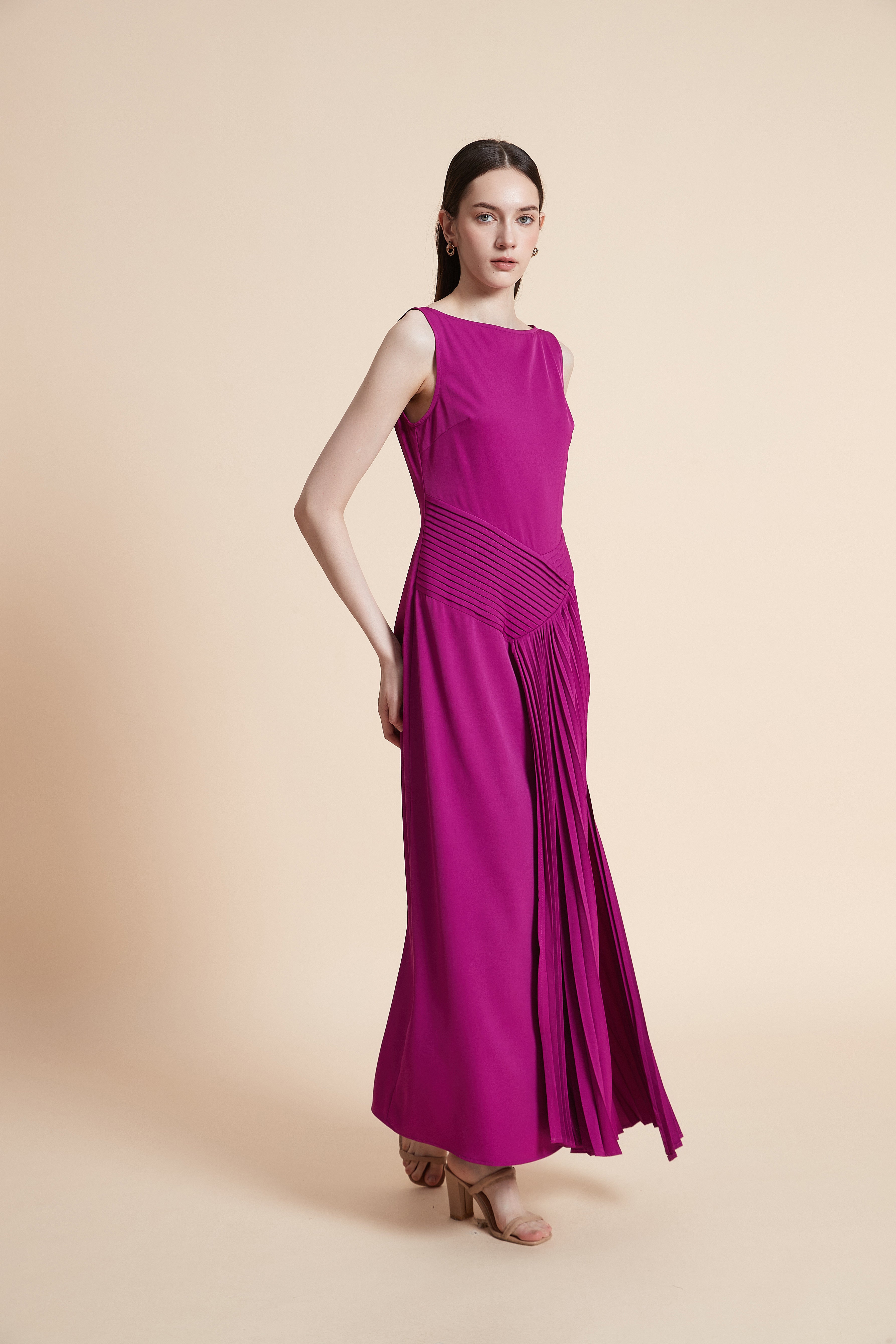فستان طويل سادة بدون أكمام