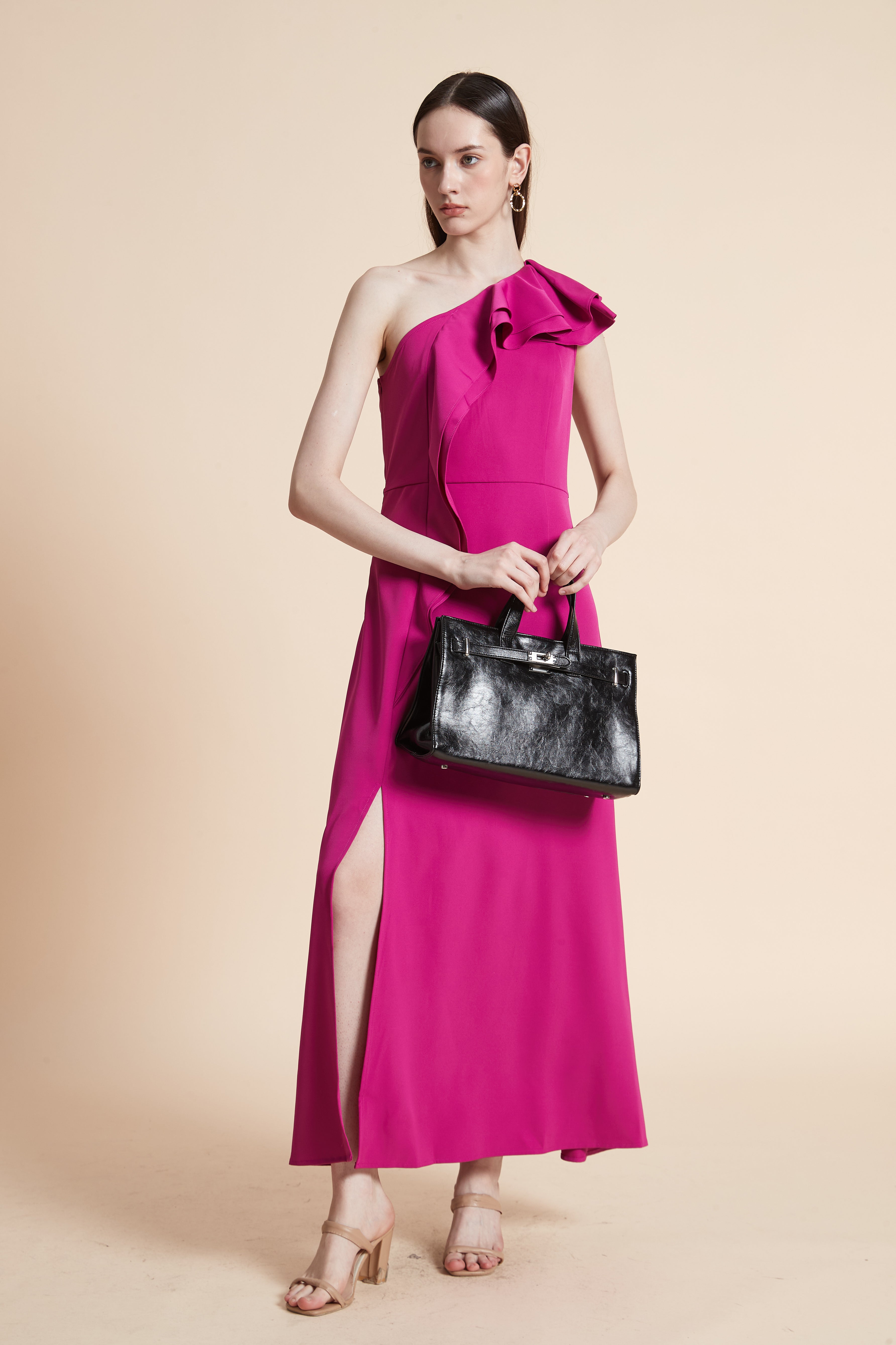 فستان ماكسي كتف مكشوف بكشكشة