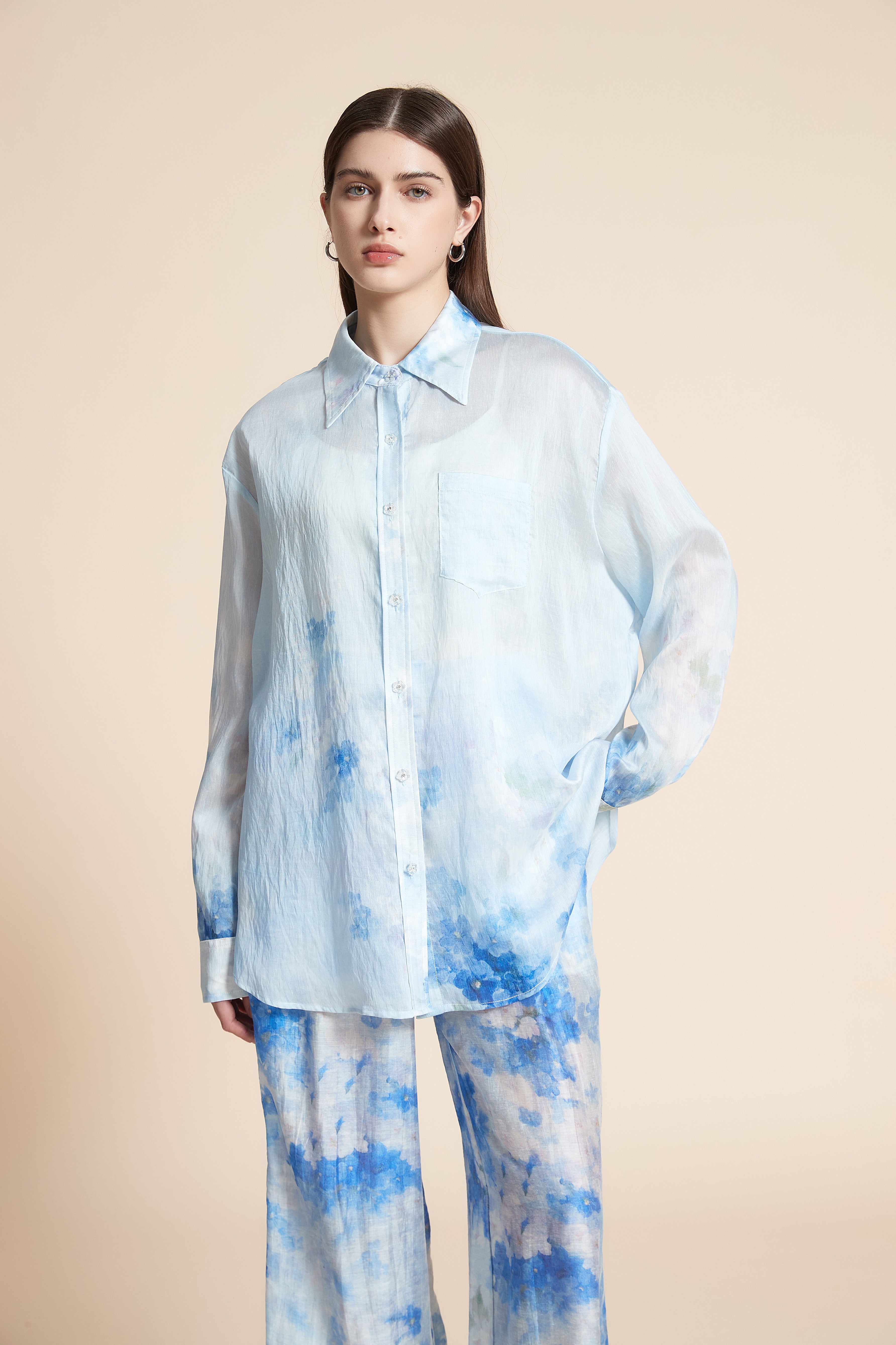 قميص بطبعة ازهار بكم طويل