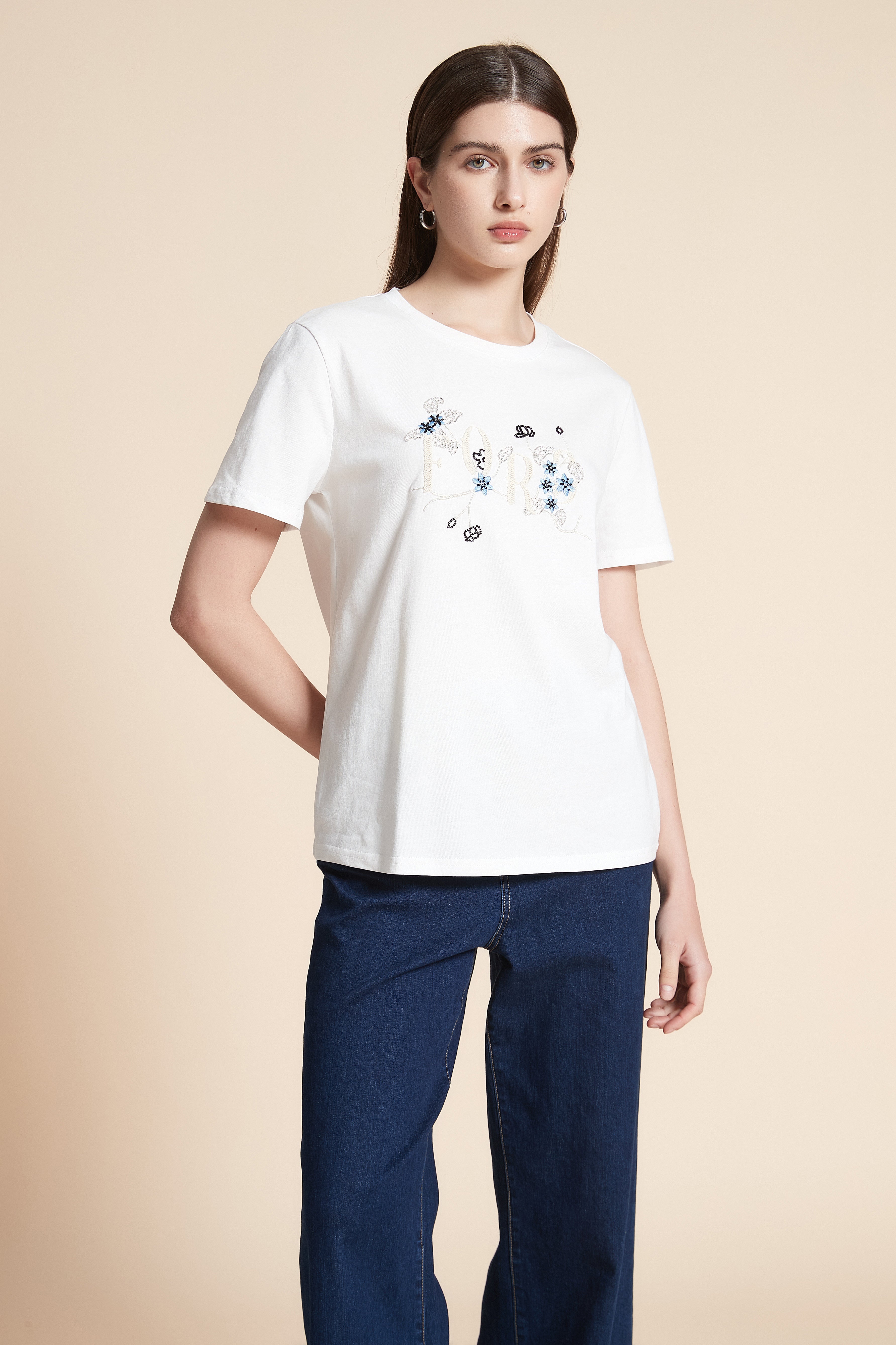 بلوزة سادة بأكمام قصيرة