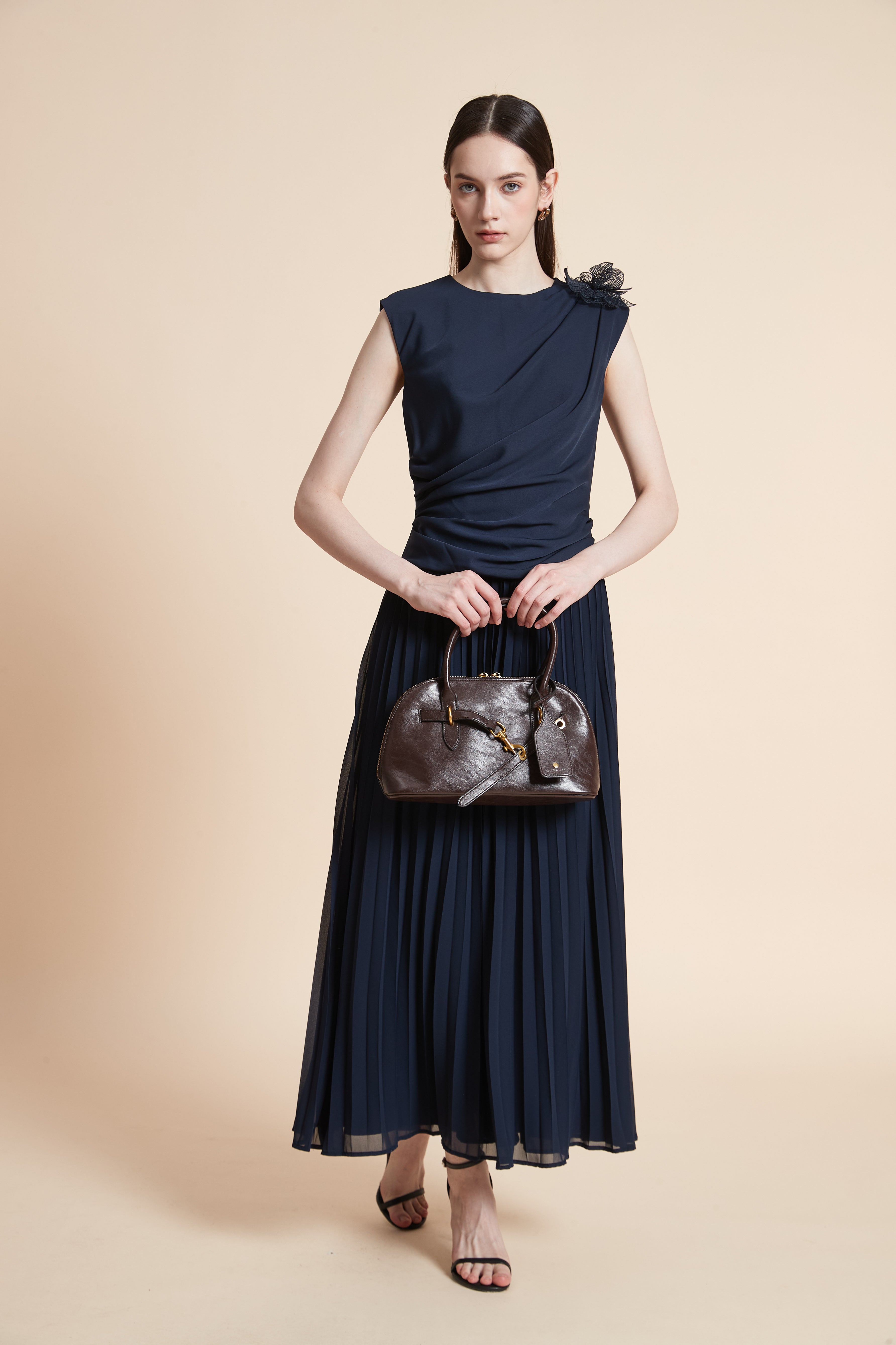 فستان ميدي بليسيه بدون أكمام