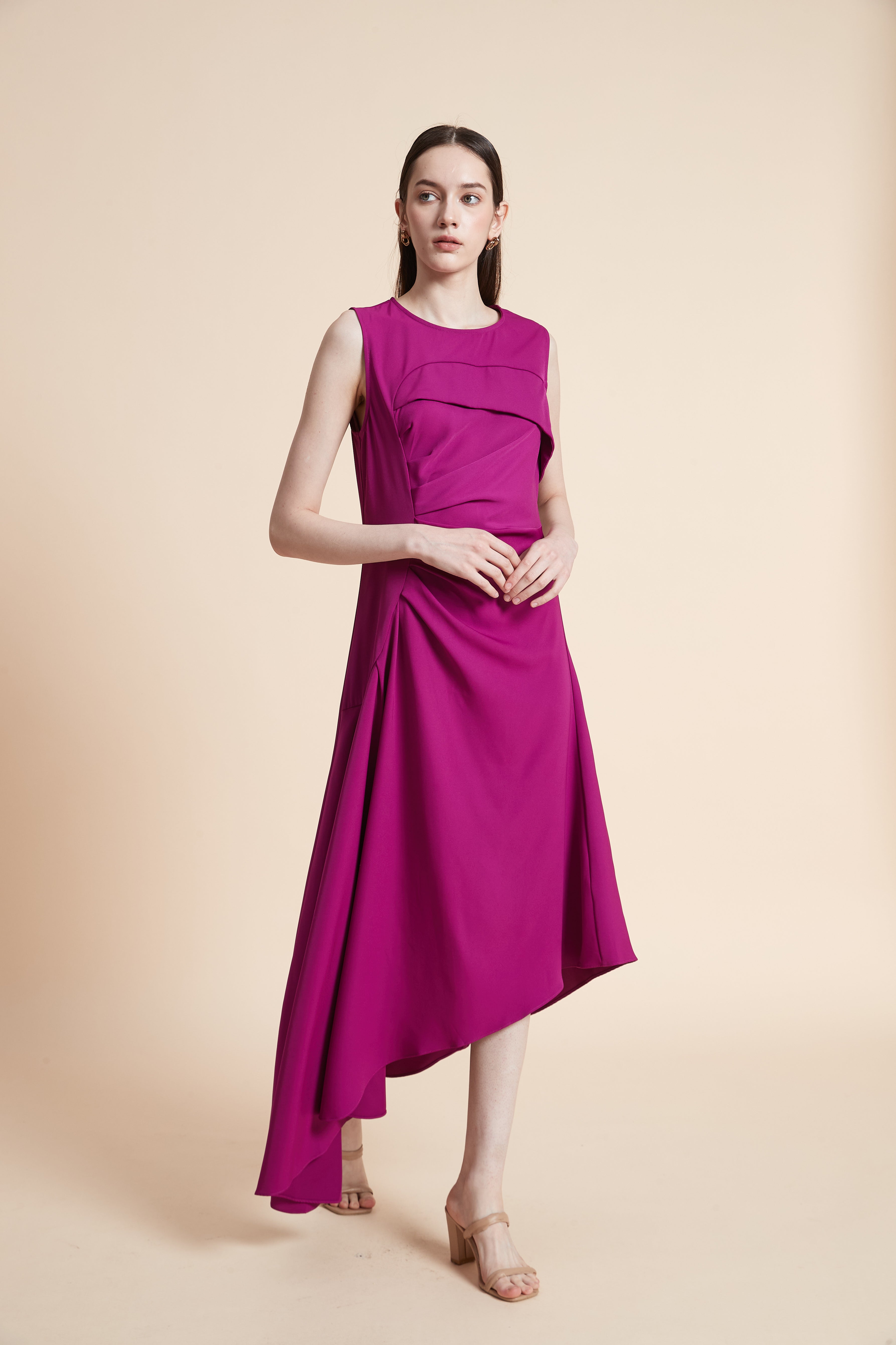 فستان ميدي بدون أكمام مخصر