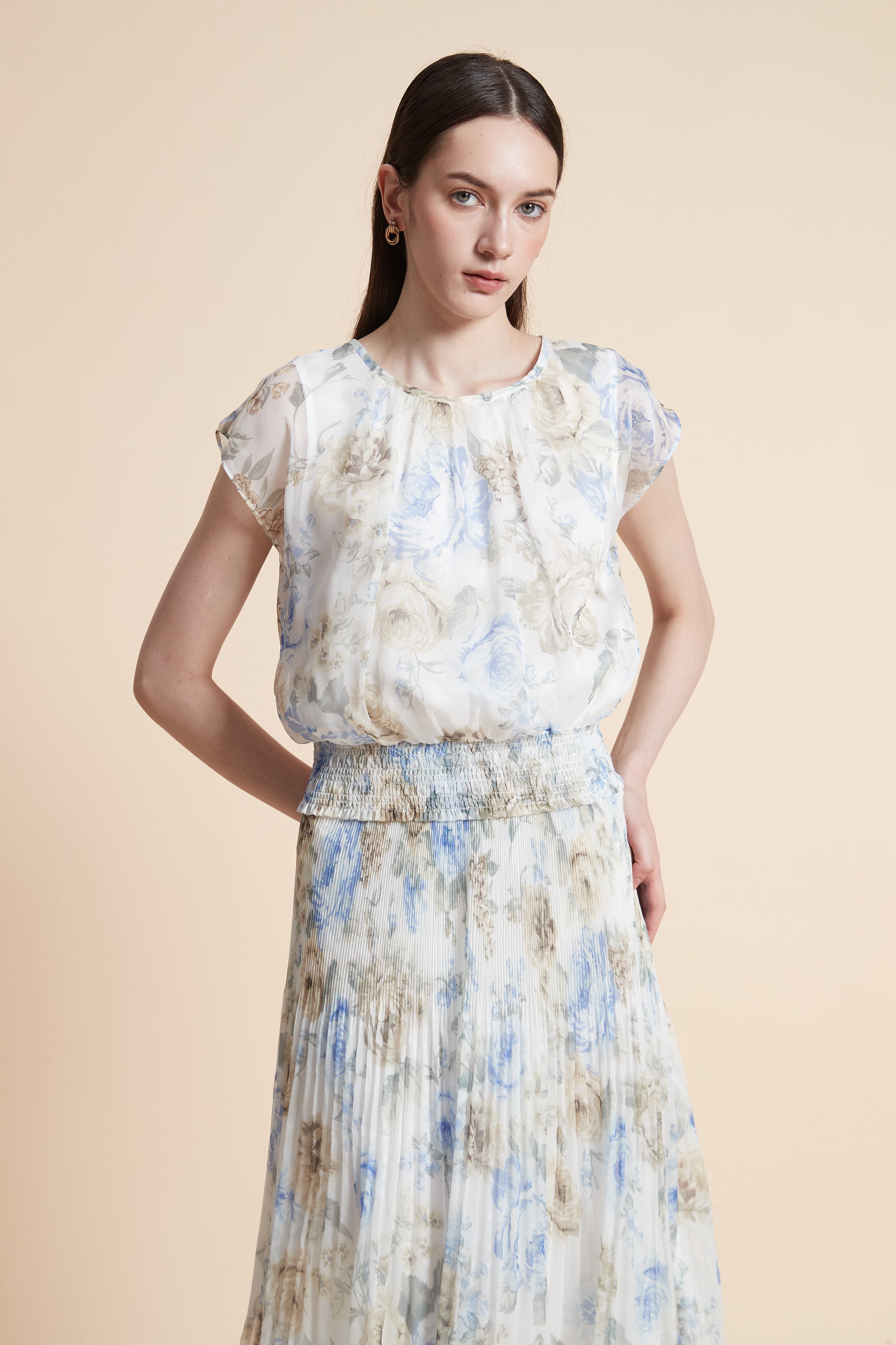 بلوزة منقوش بأكمام قصيرة