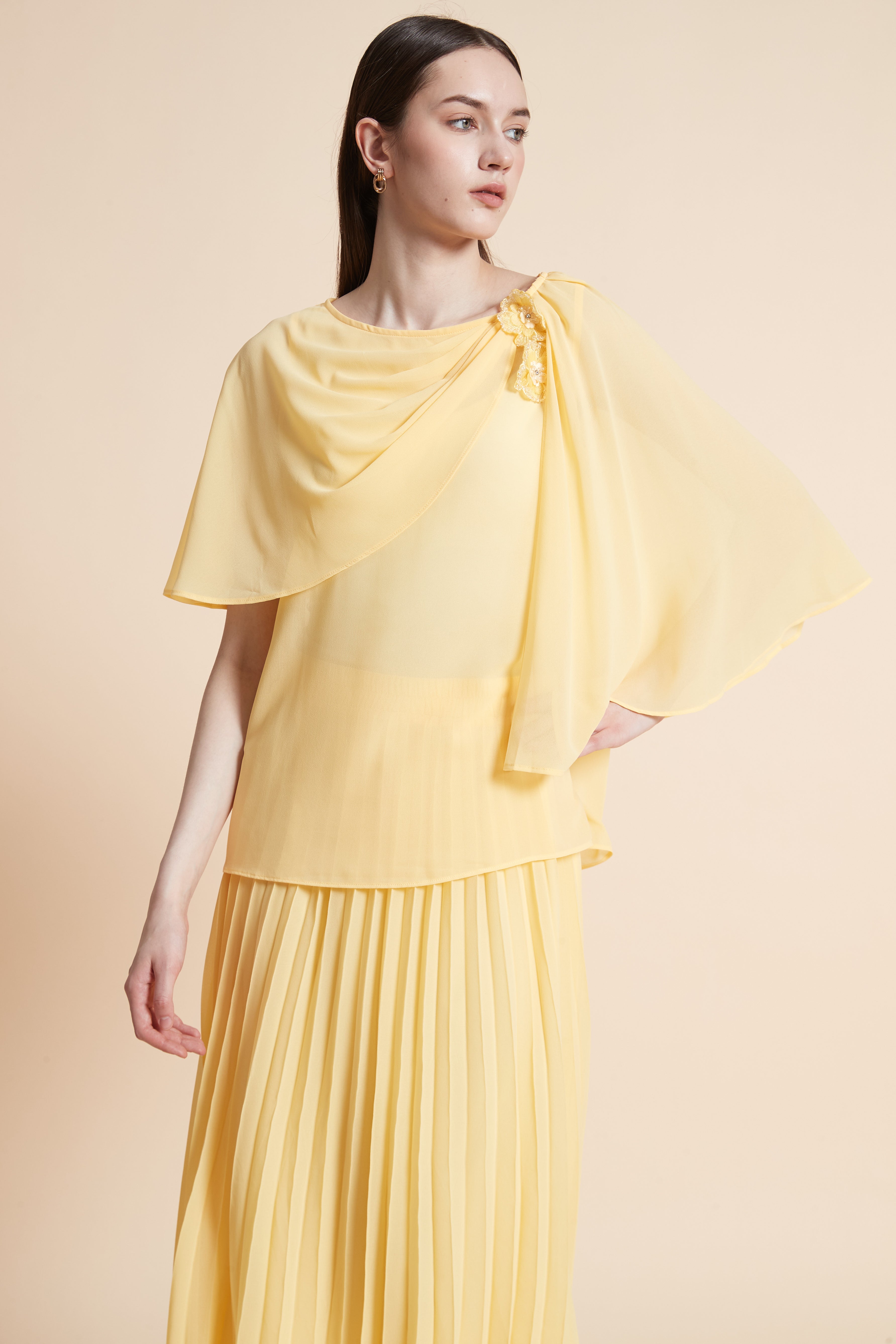 بلوزة سادة بأكمام فراشة