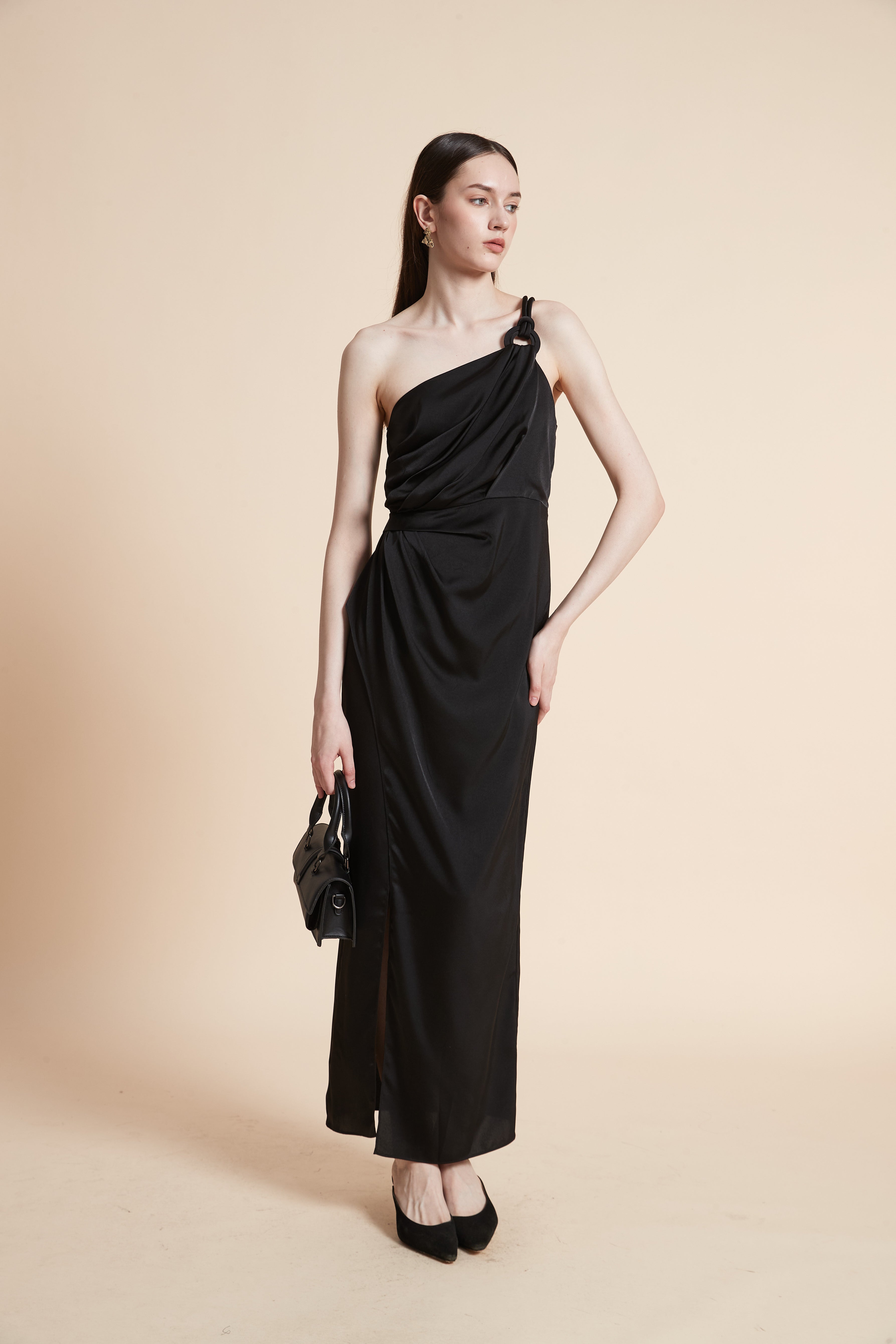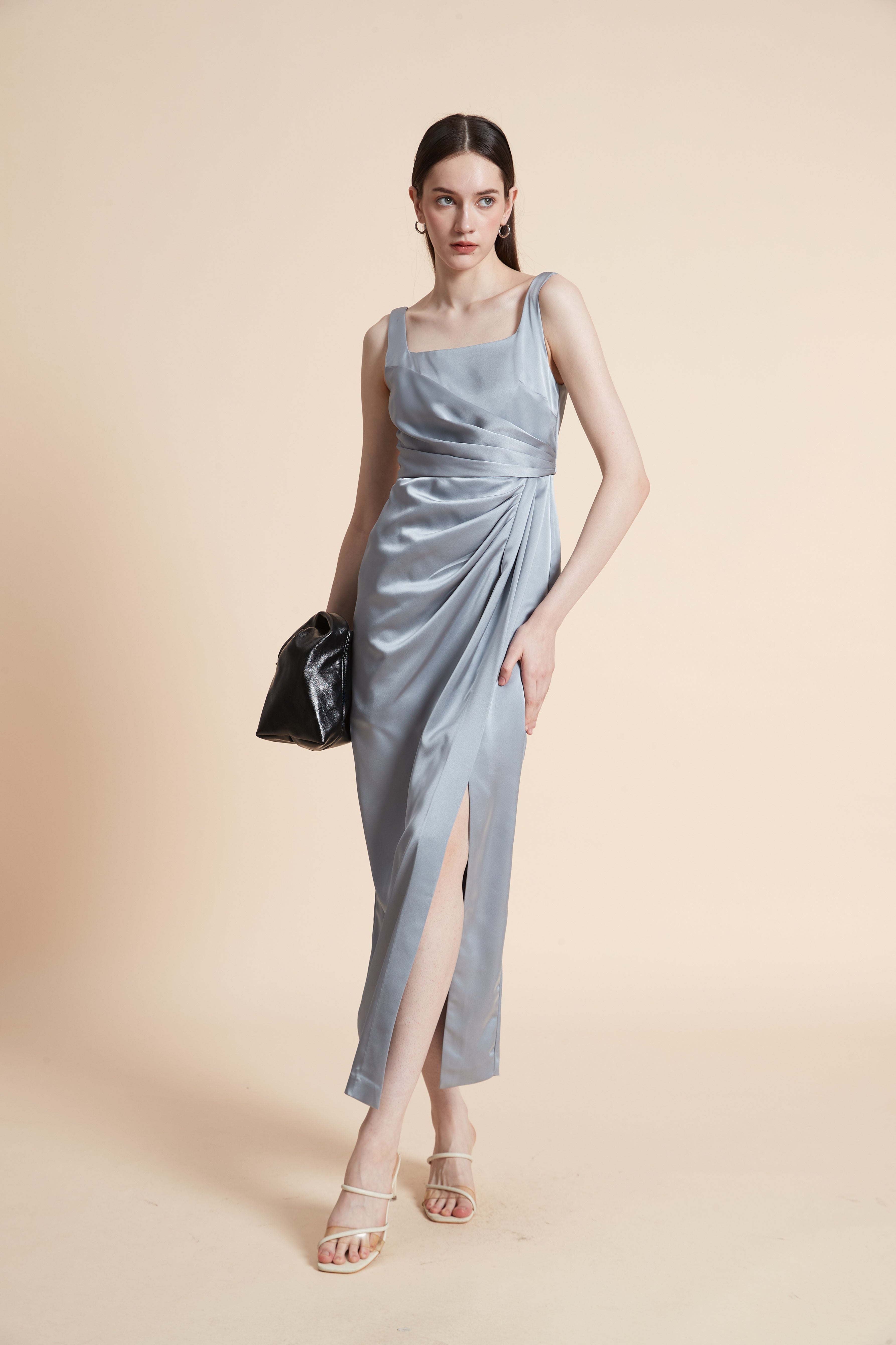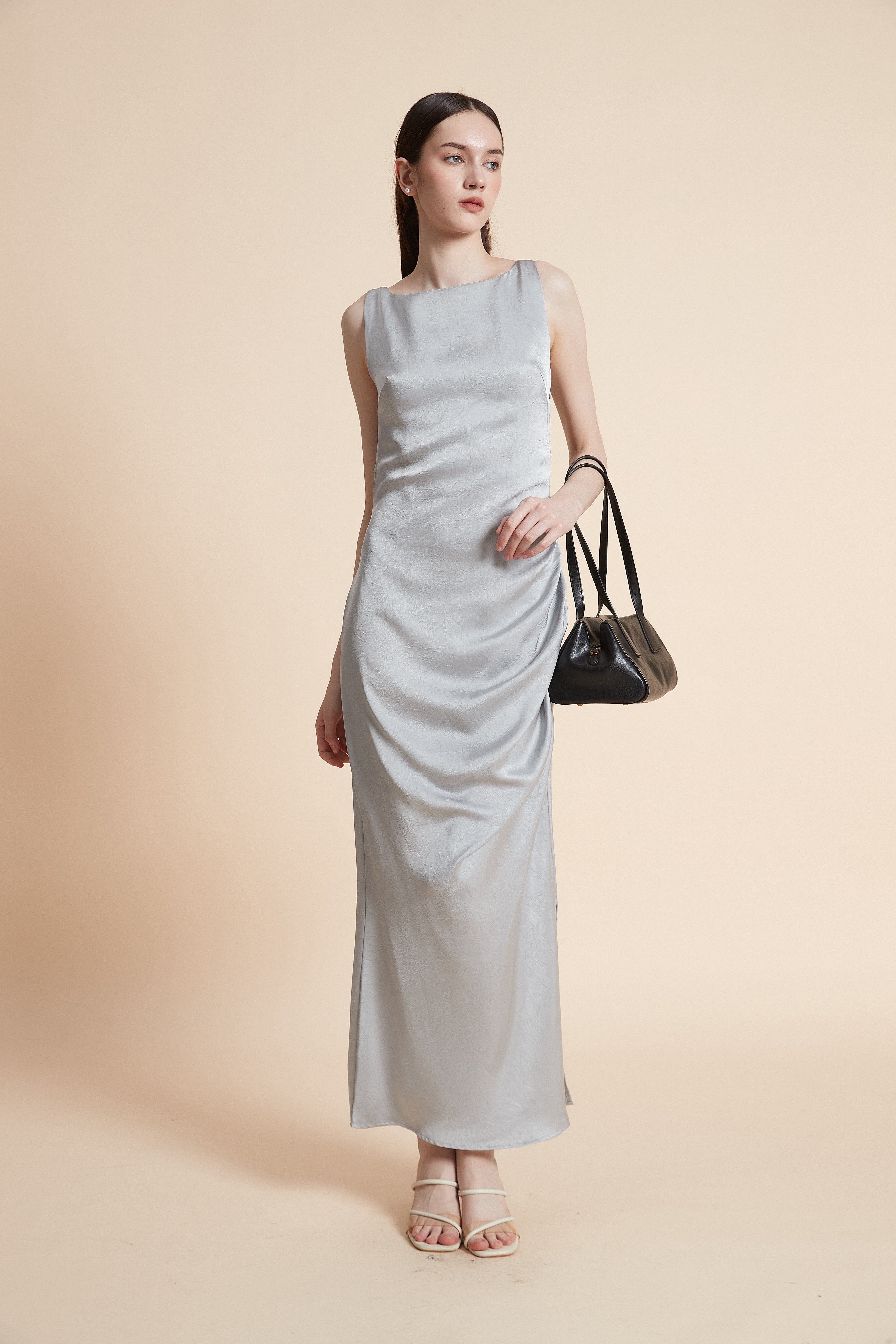فستان ماكسي بدون أكمام بفتحة أمامية